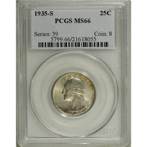 <B>1935-S 25C MS66 PCGS.</B></I> Beautifully patinated with copper-gold, yellow, russet, olive, and lilac shades over premium quality, radiantly lustrous surfaces. These attributes complement a sharp strike.<BR><BR><b>Shipping:</b> Coins & Currency (<a target="_blank" href="http://www.heritageauctions.com/common/shipping.php">view shipping information</a>)