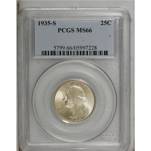 1935-S 25C MS66 PCGS. Highly lustrous beneath soft ivo