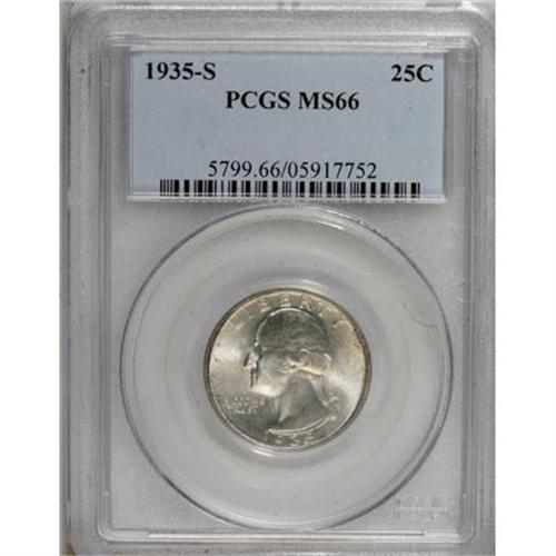 <B>1935-S 25C MS66 PCGS.</B></I> PCGS Population (184/20). NGC Census: (119/28). Mintage: 5,660,000. Numismedia Wsl. Price for NGC/PCGS coin in MS66: $480. (#5799)<BR><BR><B>Coin Engraver:</B> John Flanagan<BR><BR><b>Shipping:</b> Coins & Currency (<a target="_blank" href="http://www.heritageauctions.com/common/shipping.php">view shipping information</a>)