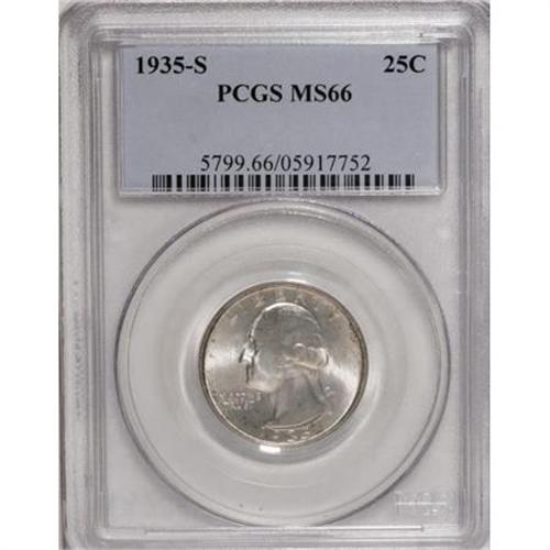 <B>1935-S 25C MS66 PCGS.</B></I> PCGS Population (193/20). NGC Census: (117/28). Mintage: 5,660,000. Numismedia Wsl. Price for NGC/PCGS coin in MS66: $440. (#5799)<BR><BR><B>Coin Engraver:</B> John Flanagan<BR><BR><b>Shipping:</b> Coins & Currency (<a target="_blank" href="http://www.heritageauctions.com/common/shipping.php">view shipping information</a>)