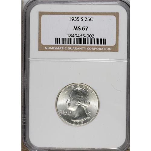 1935-S 25C MS67 NGC. A highly lustrous and untoned Sup