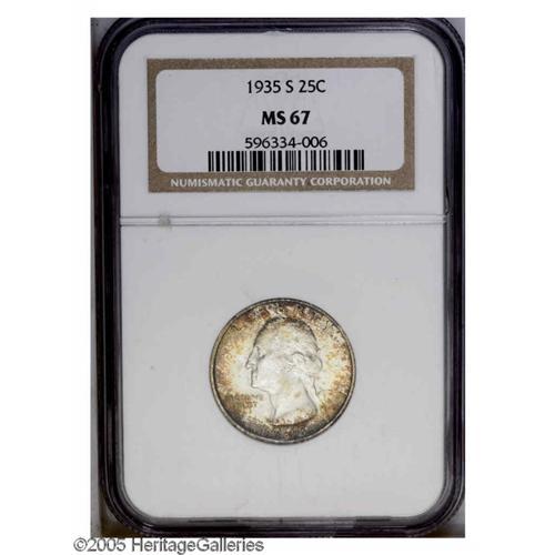 1935-S 25C MS67 NGC. Splashes of ruby-red, gold, and s 1935-S[25C] MS67 NGC.