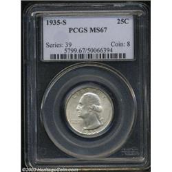 <table><tr><td><TABLE cellSpacing=0 cellPadding=0 width="100%" bgColor=#000000 border=0><TBODY> <TR><TD width="100%"><TABLE cellSpacing=1 cellPadding=3 width="100%" border=0><TBODY><TR><TD width="100%" bgColor=#79735c><FONT face=arial color=#ffffff size=3><B>Description</B> </FONT></TD></TR><TR><TD width="100%" bgColor=#ffffff><FONT face=arial size=2><B>1935-S 25C MS67 PCGS.</B></I> Highly lustrous with just a hint of natural patina over each side. There are no noteworthy marks and the strike is unusually bold for this S-mint issue. To date (9/03), none have been graded finer at either service. Population: 8 in 67, 0 finer (9/03). </FONT></TD></TR></TBODY></TABLE></TD></TR></TBODY></TABLE><BR><A name=PricesRealized></A><TABLE cellSpacing=0 cellPadding=0 width="100%" bgColor=#000000 border=0><TBODY><TR><TD width="100%"><TABLE cellSpacing=1 cellPadding=3 width="100%" border=0><TBODY><TR><TD width="100%" bgColor=#79735c><A name=PR><FONT face=arial color=#ffffff size=3><B>Previous Prices from Heritage Auctions</B> </FONT></A></TD></TR><TR><TD bgColor=#f6f6ed><TABLE cellSpacing=0 cellPadding=0 width="100%" border=1><TBODY><TR><TD align=middle width="33%"><B>Date</B></TD><TD align=middle width="33%"><B>Service</B></TD><TD align=middle width="33%"><B>Price</B></TD></TR><TR bgColor=whitesmoke><TD width="33%"><B>07/29/2003</B></TD><TD width="33%">PCGS</TD><TD width="33%">$6,900.00</TD></TR><TR bgColor=whitesmoke><TD width="33%"><B>09/26/1998</B></TD><TD width="33%">NGC</TD><TD width="33%">$747.50</TD></TR><TR bgColor=whitesmoke><TD width="33%"><B>11/17/1995</B></TD><TD width="33%">NGC</TD><TD width="33%">$605.00</TD></TR></TBODY></TABLE></TD></TR><TR><TD bgColor=#ffffff><FONT face=arial size=1 ?>PLEASE NOTE: All prices realized reflect the final hammer price PLUS the buyer's premium in auctions that charge a buyer's premium. Each item has a notation at the top of the listing indicating whether that lot included a buyer's premium. Example: A item that sells with a final hammer price of $100 and a 20% buyer's premium will display with a price realized of $120. All information listed is intended to be as accurate as possible, but errors are possible. Please use this guide carefully and inform us of any inaccuracies. </FONT></TD></TR></TBODY></TABLE></TD></TR></TBODY></TABLE><BR><TABLE cellSpacing=0 cellPadding=0 width="100%" bgColor=#000000 border=0><TBODY><TR><TD width="100%"><TABLE cellSpacing=1 cellPadding=3 width="100%" border=0><TBODY><TR><TD width="100%" bgColor=#79735c colSpan=6><FONT face=arial color=#ffffff size=3><B>Price Guide*</B> </FONT></TD></TR><TR bgColor=#f6f6ed><TD align=middle><B>Grade</B> </TD><TD align=middle><B>Coin World<BR>(Trends)</B> </TD><TD align=middle><B>Numismedia<BR>Retail</B> </TD><TD align=middle><B>Numismedia<BR>Wholesale</B> </TD><TD align=middle><B>Coin<BR>Universe</B> </TD><TD align=middle><B>Heritage<BR>Value Index</B> </TD></TR><TR bgColor=#ffffff><TD align=middle>66</TD><TD align=right>---</TD><TD align=right>$530.00</TD><TD align=right>$424.00</TD><TD align=right>$700.00</TD><TD align=right>$620.00</TD></TR><TR style="FONT-WEIGHT: bold" bgColor=#cccfdd><TD align=middle>67</TD><TD align=right>---</TD><TD align=right>---</TD><TD align=right>$775.00</TD><TD align=right>$12,000.00</TD><TD align=right>$8,400.00</TD></TR><TR bgColor=#ffffff><TD align=middle>68</TD><TD align=right>---</TD><TD align=right>---</TD><TD align=right>---</TD><TD align=right>---</TD><TD align=right>---</TD></TR><TR bgColor=#ffffff><TD colSpan=6><FONT size=1>*All information listed is intended to be as accurate as possible, but errors are possible. No item may be returned or refused based on this information which is provided as a service to our customers. You should contact each pricing source directly to determine the accuracy of this information. </FONT></TD></TR></TBODY></TABLE></TD></TR></TBODY></TABLE><BR><TABLE cellSpacing=0 cellPadding=0 width="100%" bgColor=#000000 border=0><TBODY><TR><TD width="100%"><TABLE cellSpacing=1 cellPadding=3 width="100%" border=0><TBODY><TR><TD width="100%" bgColor=#79735c><FONT face=arial color=#ffffff size=3><B>Population Guide</B> </FONT></TD></TR><TR bgColor=#ffffff><TD align=middle><!-- Begin Output of Population Grid--><TABLE cellSpacing=0 cellPadding=0 width="100%" border=0><TBODY><TR><TD vAlign=center><TABLE cellSpacing=0 width="100%" border=1 cellsadding="3"><TBODY><TR><TD vAlign=center><TABLE cellSpacing=0 cellPadding=3 width="100%" border=1><TBODY><TR><TD vAlign=center align=middle bgColor=#f0f1e8 colSpan=2 <CENTER><FONT face=Arial size=2><B>PCGS Pop </B></FONT><CENTER></CENTER></TD><TD vAlign=center align=middle bgColor=#f0f1e8 colSpan=2><CENTER><FONT face=Arial size=2><B>NGC Pop</B></CENTER></FONT></TD></TR><TR><TD vAlign=center><FONT face=Arial size=2>(67)</FONT> </TD><TD vAlign=center align=right><FONT face=Arial size=2>10</FONT> </TD><TD vAlign=center><FONT face=Arial size=2>(67)</FONT> </TD><TD vAlign=center align=right><FONT face=Arial size=2>22</FONT> </TD></TR><TR><TD vAlign=center><FONT face=Arial size=2>(>67)</FONT> </TD><TD vAlign=center align=right><FONT face=Arial size=2>0</FONT> </TD><TD vAlign=center><FONT face=Arial size=2>(>67)</FONT> </TD><TD vAlign=center align=right><FONT face=Arial size=2>0</FONT> </TD></TR></TBODY></TABLE></TD></TR></TBODY></TABLE></TD></TR></TBODY></TABLE><!-- End Output of Population Grid--></TD></TR></TBODY></TABLE></TD></TR></TBODY></TABLE><BR><TABLE cellSpacing=0 cellPadding=0 width="100%" bgColor=#000000 border=0><TBODY><TR> Important notice: Heritage usually auctions material at the rate of 200-250 lots per hour. On some occasions eBay Live bid software or the Internet may not be able to keep up with the pace of the auction. We recommend placing a realistic absentee bid now as insurance to avoid disappointment. Occasionally the auctioneer may eliminate or reject an eBay Live bid, and the auctioneer may also reopen a lot after the close of the eBay live bidding (usually because we missed an audien