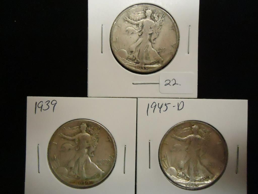 1935-S,39 & 45-D WALKING LIBERTY HALF DOLLARS