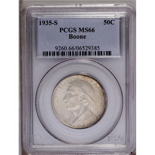 1935-S 50C Boone MS66 PCGS. Luster glimmers through th 1935-S[50C] Boone MS66 PCGS.