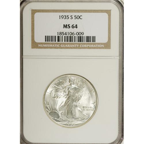 <B>1935-S 50C MS64 NGC.</B></I> NGC Census: (270/201). PCGS Population (402/355). Mintage: 3,854,000. Numismedia Wsl. Price for NGC/PCGS coin in MS64: $675. (#6597)<BR><BR><b>Shipping:</b> Coins & Currency (<a target="_blank" href="http://www.heritageauctions.com/common/shipping.php">view shipping information</a>)