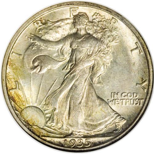 1935-S 50C MS65 NGC. A layer of lovely, original tonin