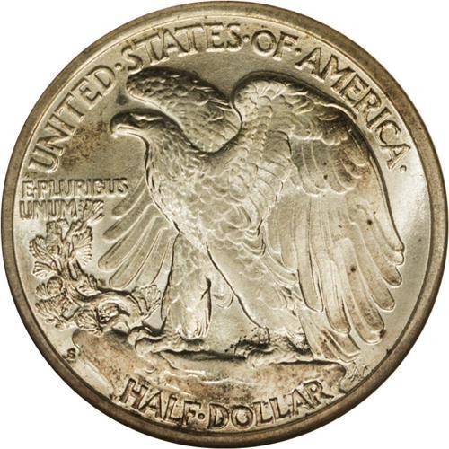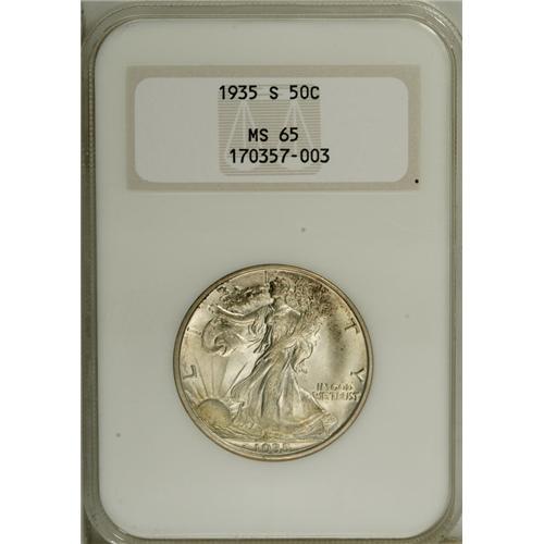 1935-S 50C MS65 NGC. Sky-blue and tawny-gold shades en