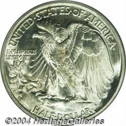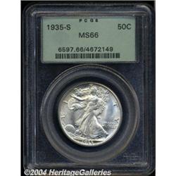 <B>1935-S<50C> MS66 PCGS.</B></I> Pristine surfaces are untoned save for a dash of orange-gold color at the center of the reverse and have a chalk-white, satiny finish that is most appealing. While not fully detailed, the devices exhibit far stronger definition than is normally expected of the issue. Population: 58 in 66, 1 finer (7/04).<BR><I>From The Dr. Frank Lanza Collection of Walking Liberty Half Dollars.</B></I> <BR><BR><B>Important notice:</B> Heritage usually auctions material at the rate of 200-250 lots per hour. On some occasions eBay Live bid software or the Internet may not be able to keep up with the pace of the auction. We recommend placing a realistic absentee bid now as insurance to avoid disappointment. Occasionally the auctioneer may eliminate or reject an eBay Live bid, and the auctioneer may also reopen a lot after the close of the eBay live bidding (usually because we missed an audience bid), and may reject your bid even if it shows you as the winning bidder. By bidding via eBay Live, you agree that Heritage may award the lot to another bidder at its sole discretion under the circumstances described above or any other reasonable circumstances. Since eBay bids are not shown to us until we open the lot on the floor, we treat those bids just like floor bids. In most cases the floor responds before the eBay bid is presented to us, due to Internet lag time, so for consistency we have made it a policy that floor bids are always considered first over tie eBay live bids. Also please note that all Heritage lots purchased through eBay Live carry a 20% Buyer's Premium. Please make sure you read the Terms and Conditions before you bid. </span></font></tr></table></td></tr></table>