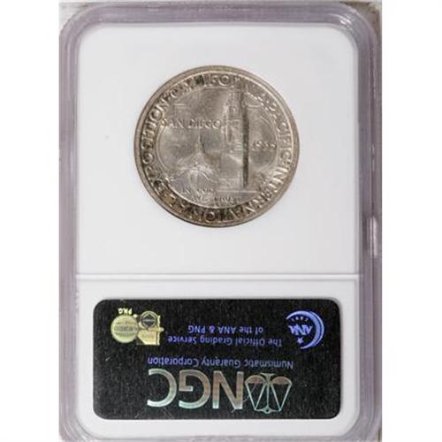 <B>1935-S 50C San Diego MS65 NGC.</B></I> Included with the lot is a five-piece cardboard holder stamped "LONG ISLAND TERCENTENARY COMMITTEE" on the back, and two application forms to receive Long Island Tercentenary half dollars. NGC Census: (2455/635). PCGS Population (5466/1598). Mintage: 70,132. Numismedia Wsl. Price for NGC/PCGS coin in MS65: $140. (#9371)<BR><I>From The Frank DuVall Collection of U.S. Commemoratives.</B></I><BR><BR><b>Shipping:</b> Coins & Currency (<a target="_blank" href="http://www.heritageauctions.com/common/shipping.php">view shipping information</a>\)