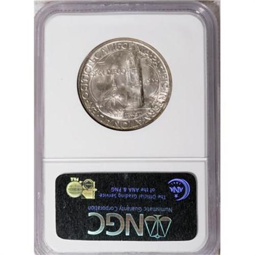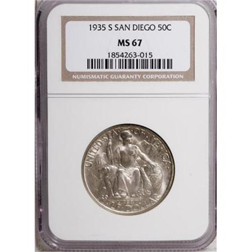 <B>1935-S 50C San Diego MS67 NGC.</B></I> Included with the lot is a blank circa-1965 postcard with a view of Hotel Del Coronado and the San Diego Bay Bridge. NGC Census: (67/4). PCGS Population (101/3). Mintage: 70,132. Numismedia Wsl. Price for NGC/PCGS coin in MS67: $1,250. (#9371)<BR><I>From The Frank DuVall Collection of U.S. Commemoratives.</B></I><BR><BR><b>Shipping:</b> Coins & Currency (<a target="_blank" href="http://www.heritageauctions.com/common/shipping.php">view shipping information</a>\)