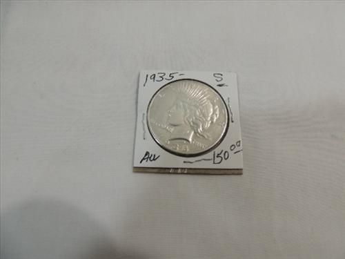 1935-S ABOUT UNCIRCULATED PEACE SILVER DOLLAR. AS SHOWN. VIEW PICTURE FOR DETAIL.