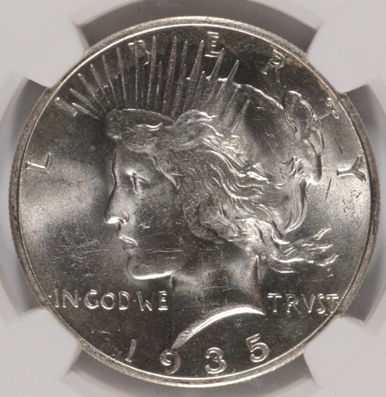 1935-S PEACE SILVER DOLLAR, NGC MS-63  BLAST WHITE!