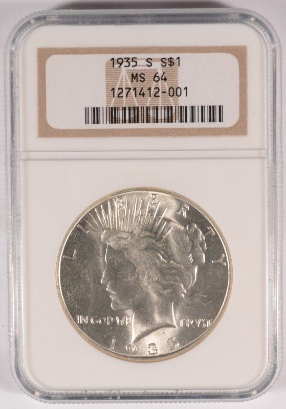 1935-S PEACE SILVER DOLLAR, NGC MS-64 BLAST WHITE HARD TO FIND!!