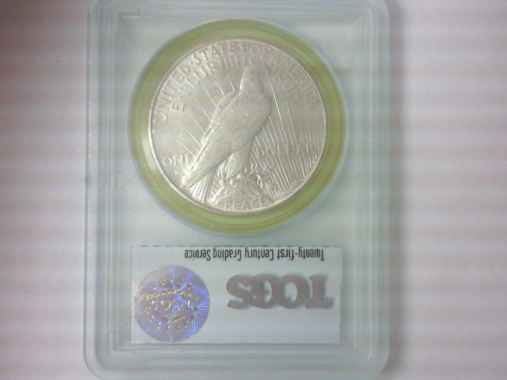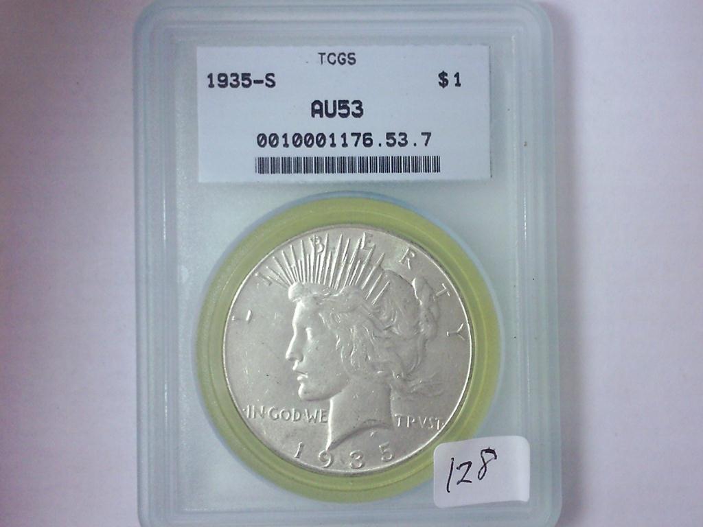 1935-S PEACE SILVER DOLLAR TCGS (AU53)