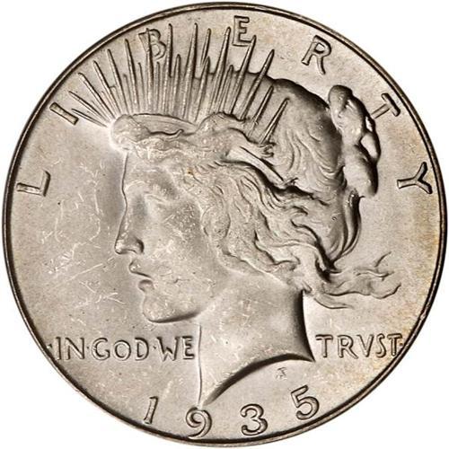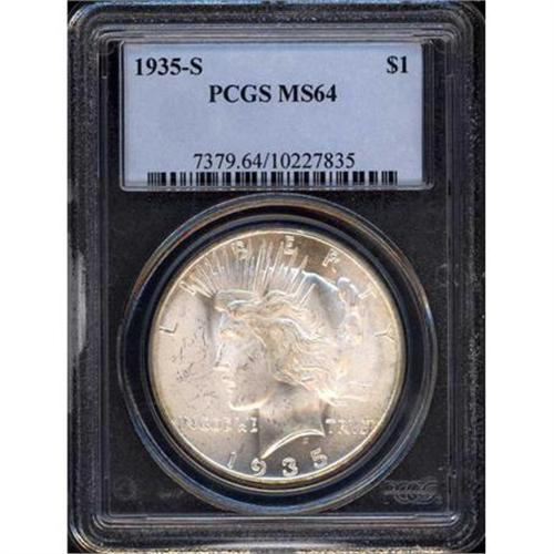 <b>1935-S Peace Dollar. PCGS graded MS64.</b> Highly radiant and largely bright with warm silvery highlights on both sides. A choice specimen <b>(PCGS # 7379)</b>