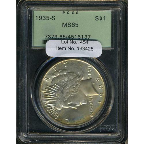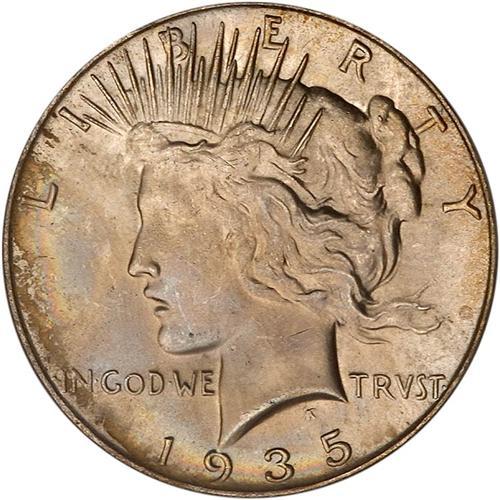 Bright, seamless gold toning on the obverse. No significant marks. In an older PCGS holder. Bids $470 and trends $700.