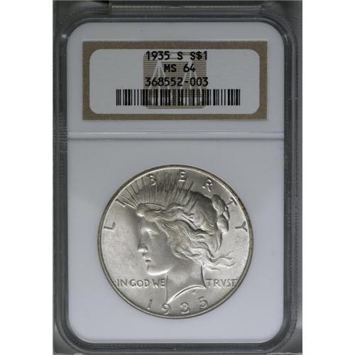 1935-S S$1 MS64 NGC. Three rays beneath ONE. A lustrou 1935-S[img border='0' src='http://www.heritag