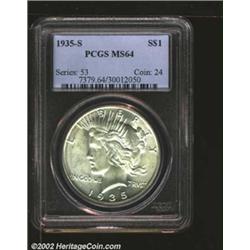 1935-S S$1 MS64 PCGS. Full mint brilliance with a dash of golden patina and just a hint of central s