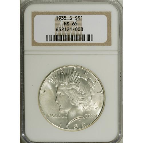 1935-S S$1 MS65 NGC. Well struck with satiny, yet mild
