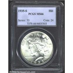 1935-S S$1 MS66 PCGS. Sharply defined on the reverse with a fully struck obverse, the surfaces are b