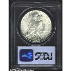 1935-S S$1 MS66 PCGS. The San Francisco Mint, along with the Philadelphia and Denver facilities, produced its last Peace Dollars in 1935. The total mintage for the '35-S is a relatively modest 1.9 million pieces. Nevertheless, this issue is readily obtainable in all grades through the MS64 level, and even MS65 coins can be located with a little patience. In finer grades, the '35-S is rare, and PCGS has yet to certify a coin above the present level. This is a beautifully frosted, bright, and minimally patinated example. While S-mint Peace Dollars are typically characterized by poor striking quality, this coin is boldly, if not sharply struck in all areas. There are few abrasions, none of which are sizeable, and virtually none of which are located in the prime focal areas on the obverse. Simply put, this is a beautiful coin and one of the most important '35-S Peace Dollars that we have ever offered. Population: 62 in 66, 0 finer (7/02). Important notice: We expect to be auctioning lots at the rate of 200-250 per hour. Sometimes eBay Premier live bid software cannot keep up with that pace, so we strongly recommend that you place a realistic proxy bid now as insurance to avoid disappointment. Also please note that all Heritage/CAA lots purchased through eBay Premier carry a 20% Buyer's Premium. Please make sure you read the Terms and Conditions.