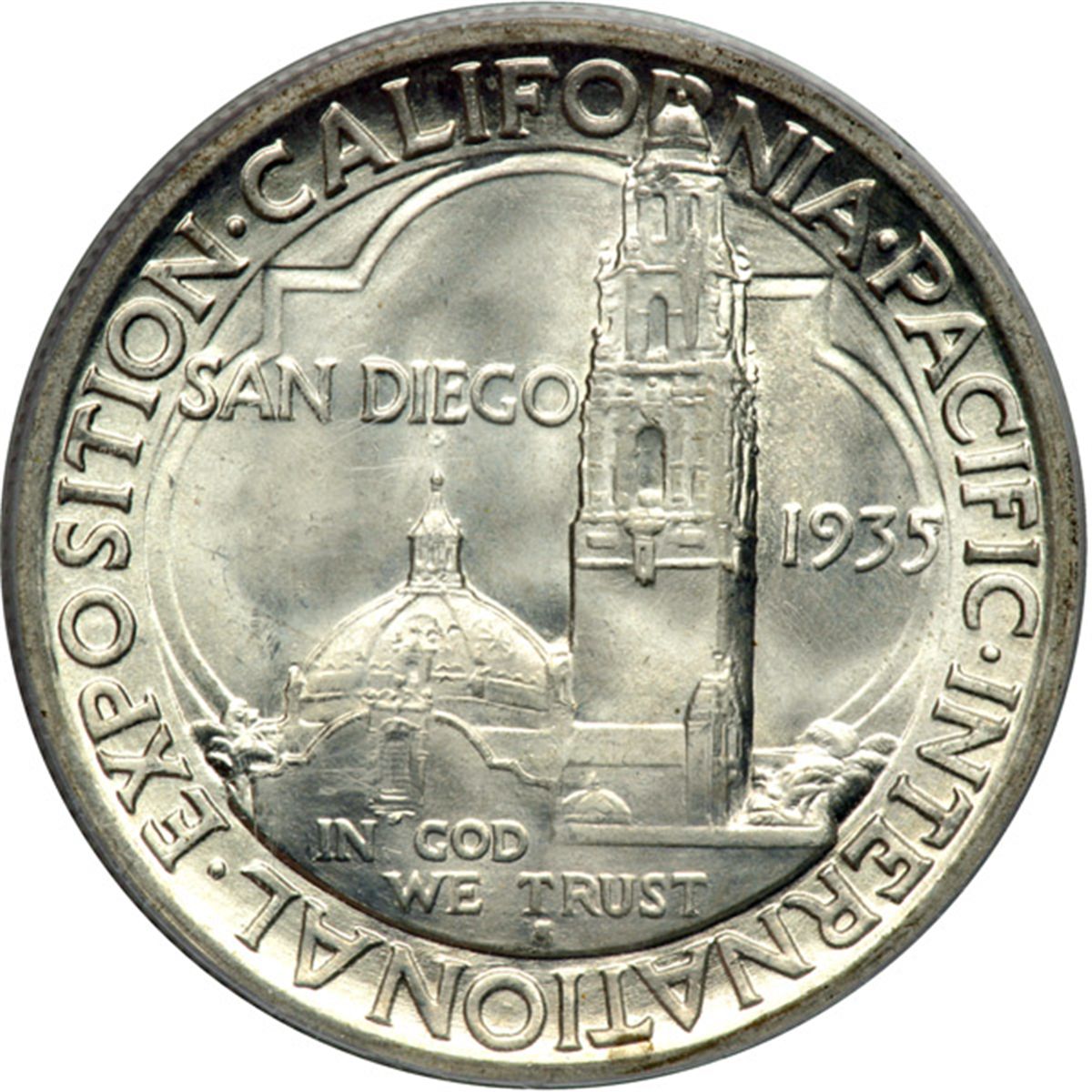 1935-S San Diego Half Dollar. PCGS graded MS-66. A brilliant untoned gem (PCGS # 9371) .