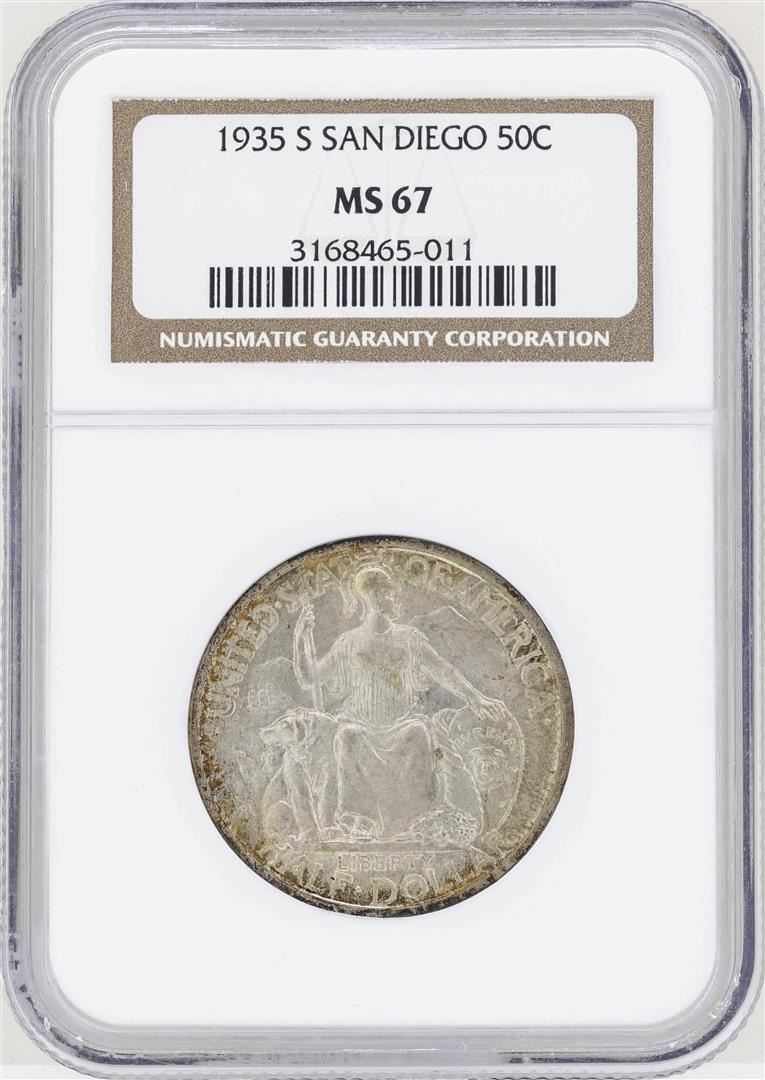 One 1935-S San Diego Commemorative Half Dollar Coin NGC MS67. NGC Certified.