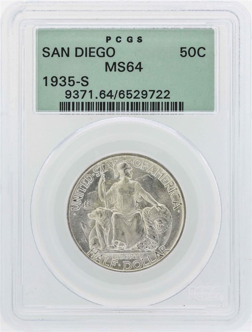 One 1935-S San Diego Commemorative Half Dollar Coin PCGS MS64. PCGS Graded.