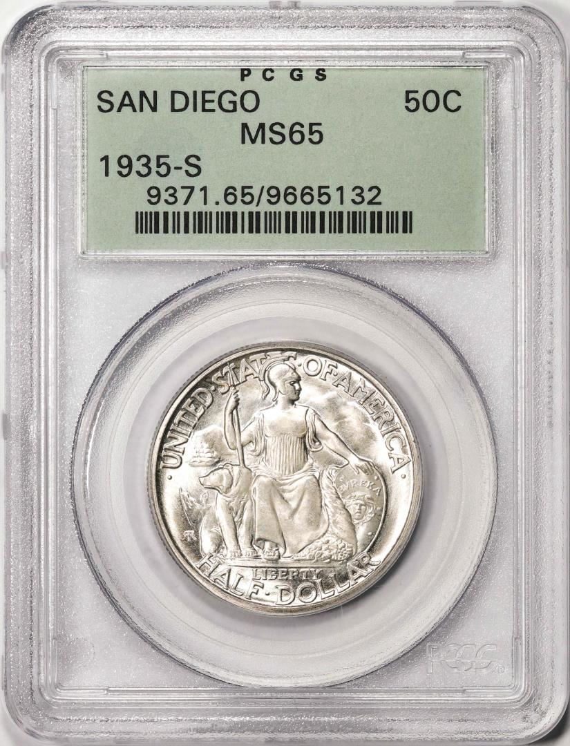 1935-S San Diego Commemorative Half Dollar Coin PCGS MS65 Old Green Holder