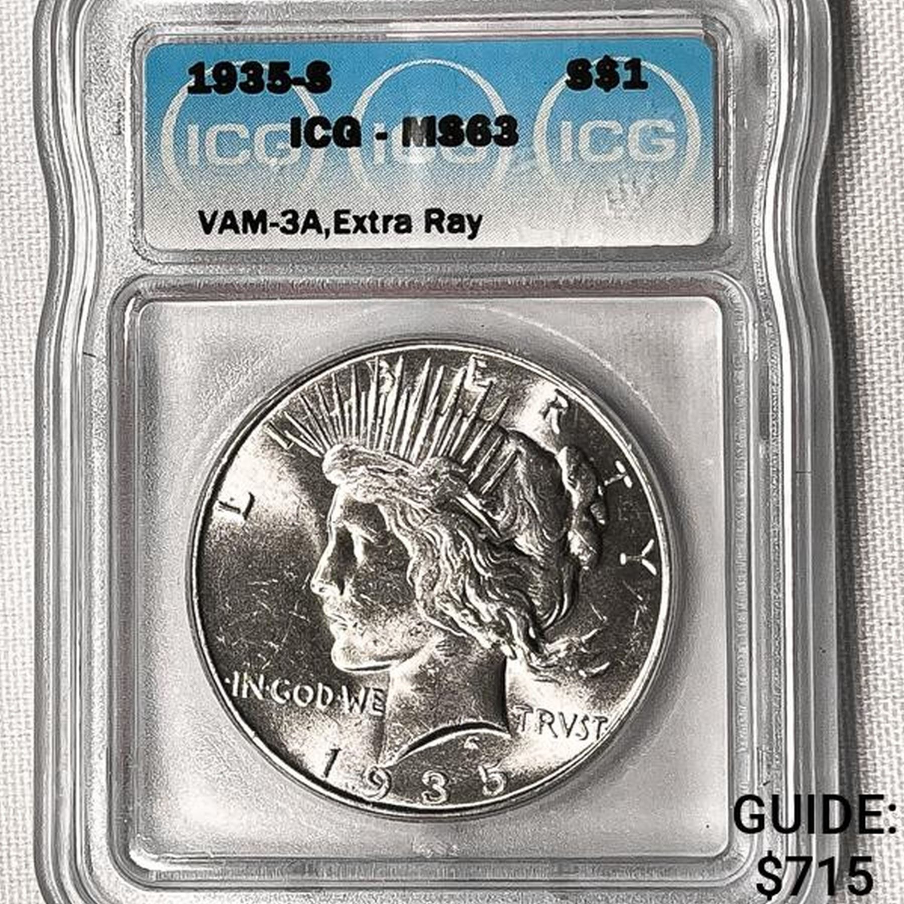 1935-S Silver Peace Dollar ICG-MS63 VAM-3A, Xtra