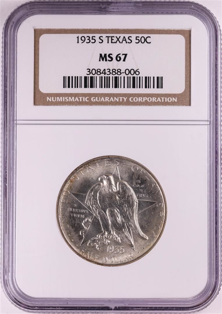 One 1935-S Texas Independence Centennial Commemorative Half Dollar Coin NGC MS67. NGC Certified.