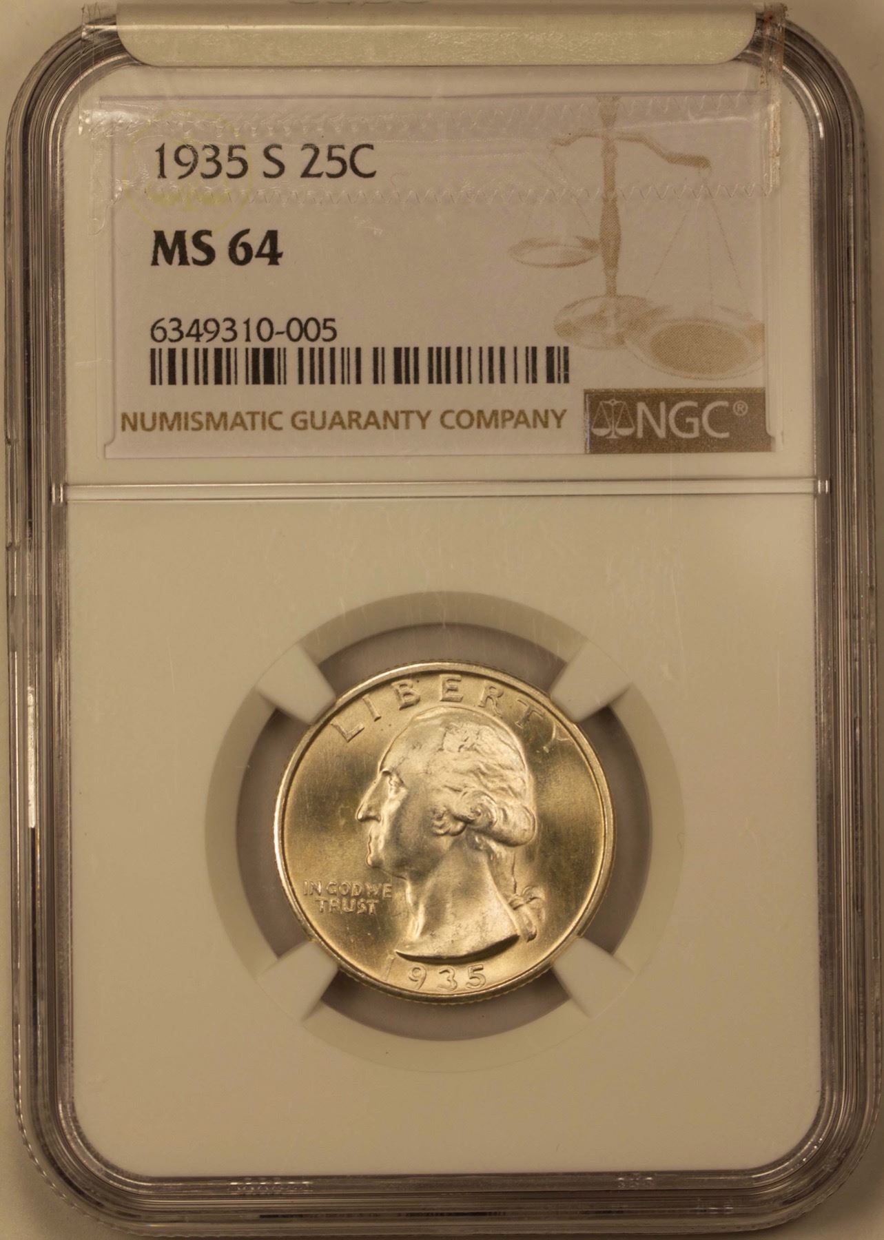 1935-S Washing Quarter 25c NGC MS-64 (PQ+++)