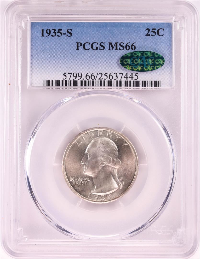 One 1935-S Washington Quarter Coin PCGS MS66 CAC. PCGS Graded.