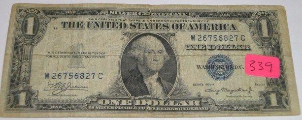 1935 SERIES A SILVER CERTIFICATE $1 BILL SERIAL # W26756827C *NICE VERY EARLY U.S. BILL*!! DOLLAR CAME OUT OF SAFE!! ***Coin, Currency & All Items Listed in this auction - Grades, Conditions and Values are not Safe Deposit Coins LLC Responsibilty. Grades, Condition and Values are determined by Consigner(s) & Buyers ONLY***