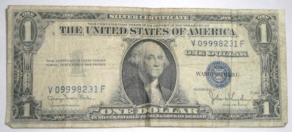 1935 SERIES D $1 SILVER CERTIFICATE SERIAL # V09998231F *PLEASE LOOK AT PICTURE TO DETERMINE GRADE*! ***Coin, Currency & All Items Listed in this auction - Grades, Conditions and Values are not Safe Deposit Coins LLC Responsibilty. Grades, Condition and Values are determined by Consigner(s) & Buyers ONLY