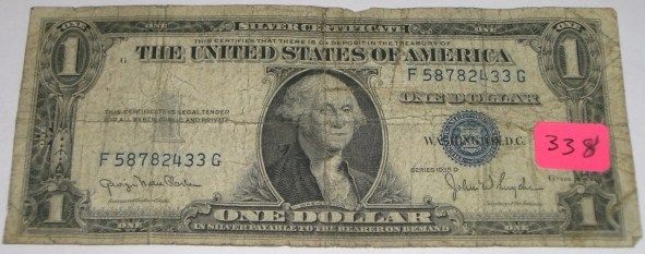 1935 SERIES D SILVER CERTIFICATE $1 BILL SERIAL # F58782433G *NICE VERY EARLY U.S. BILL*!! DOLLAR CAME OUT OF SAFE!! ***Coin, Currency & All Items Listed in this auction - Grades, Conditions and Values are not Safe Deposit Coins LLC Responsibilty. Grades, Condition and Values are determined by Consigner(s) & Buyers ONLY***