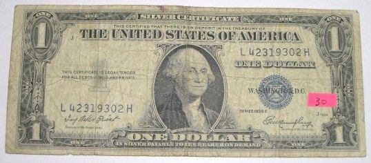 1935 SERIES E $1 SILVER CERTIFICATE BILL SERIAL #L42319302H *NICE EARLY U.S. BILL*!! ***Coin, Currency & All Items Listed in this auction - Grades, Conditions and Values are not Safe Deposit Coins LLC Responsibilty. Grades, Condition and Values are determined by Consigner(s) & Buyers ONLY***