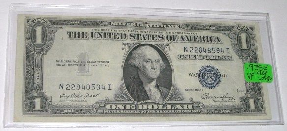 1935 SERIES E $1 SILVER CERTIFICATE BILL SERIAL # N22848594I *RARE CRISP VERY FINE EARLY NOTE*!! DOLLAR BILL CAME OUT OF SAFE!! ***Coin, Currency & All Items Listed in this auction - Grades, Conditions and Values are not Safe Deposit Coins LLC Responsibilty. Grades, Condition and Values are determined by Consigner(s) & Buyers ONLY***