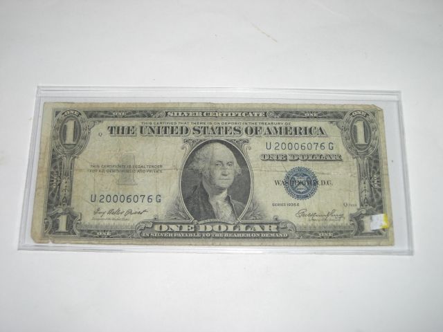 1935 SERIES E $1 SILVER CERTIFICATE NOTE *NICE BILL* Serial# U20006076G!! ***Coin, Currency & All Items Listed in this auction - Grades, Conditions and Values are not Safe Deposit Coins LLC Responsibilty. Grades, Condition and Values are determined by Consigner(s) & Buyers ONLY*!!