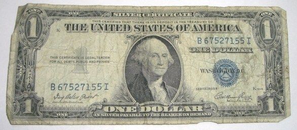 1935 SERIES E $1 SILVER CERTIFICATE SERIAL # B67527155I *PLEASE LOOK AT PICTURE TO DETERMINE GRADE*! ***Coin, Currency & All Items Listed in this auction - Grades, Conditions and Values are not Safe Deposit Coins LLC Responsibilty. Grades, Condition and Values are determined by Consigner(s) & Buyers ONLY