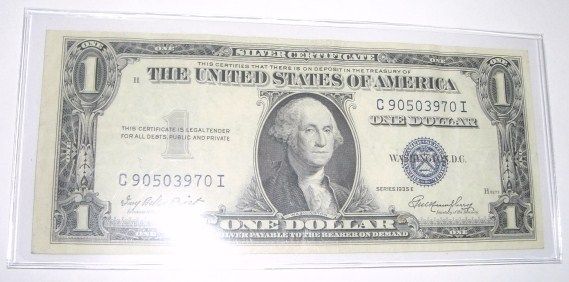 1935 SERIES E $1 SILVER CERTIFICATE SERIAL # C90503970I *RARE AU HIGH GRADE*! ***Coin, Currency & All Items Listed in this auction - Grades, Conditions and Values are not Safe Deposit Coins LLC Responsibilty. Grades, Condition and Values are determined by Consigner(s) & Buyers ONLY