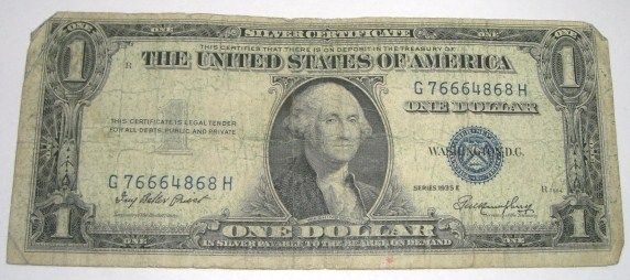 1935 SERIES E $1 SILVER CERTIFICATE SERIAL # G76664868H *PLEASE LOOK AT PICTURE TO DETERMINE GRADE*! ***Coin, Currency & All Items Listed in this auction - Grades, Conditions and Values are not Safe Deposit Coins LLC Responsibilty. Grades, Condition and Values are determined by Consigner(s) & Buyers ONLY