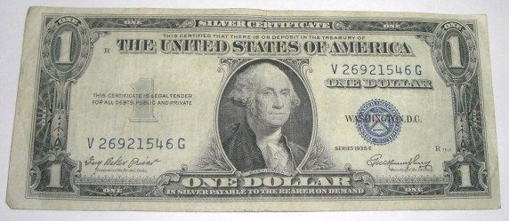 1935 SERIES E $1 SILVER CERTIFICATE SERIAL # V26921546G *PLEASE LOOK AT PICTURE TO DETERMINE GRADE*! ***Coin, Currency & All Items Listed in this auction - Grades, Conditions and Values are not Safe Deposit Coins LLC Responsibilty. Grades, Condition and Values are determined by Consigner(s) & Buyers ONLY