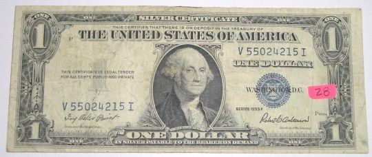 1935 SERIES F $1 SILVER CERTIFICATE BILL SERIAL #V55024215I *NICE EARLY U.S. BILL*!! ***Coin, Currency & All Items Listed in this auction - Grades, Conditions and Values are not Safe Deposit Coins LLC Responsibilty. Grades, Condition and Values are determined by Consigner(s) & Buyers ONLY***