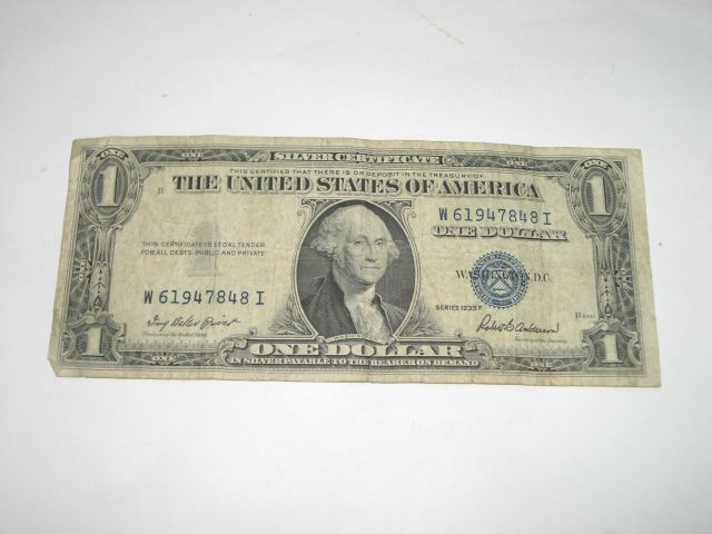 1935 SERIES F $1 SILVER CERTIFICATE NOTE *NICE BILL* Serial# W61947848I!! ***Coin, Currency & All Items Listed in this auction - Grades, Conditions and Values are not Safe Deposit Coins LLC Responsibilty. Grades, Condition and Values are determined by Consigner(s) & Buyers ONLY*!!