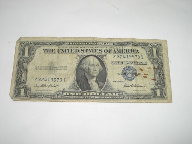 1935 SERIES F $1 SILVER CERTIFICATE NOTE *NICE BILL* Serial# Z32419570I!! ***Coin, Currency & All Items Listed in this auction - Grades, Conditions and Values are not Safe Deposit Coins LLC Responsibilty. Grades, Condition and Values are determined by Consigner(s) & Buyers ONLY*!!