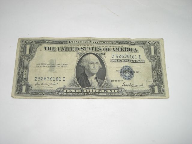 1935 SERIES F $1 SILVER CERTIFICATE NOTE *NICE BILL* Serial# Z52636181I!! ***Coin, Currency & All Items Listed in this auction - Grades, Conditions and Values are not Safe Deposit Coins LLC Responsibilty. Grades, Condition and Values are determined by Consigner(s) & Buyers ONLY*!!