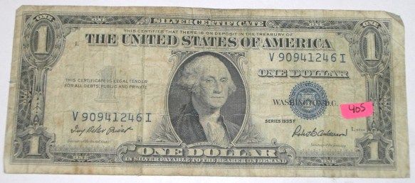 1935 SERIES F $1 SILVER CERTIFICATE SERIAL # V90941246I *NICE VERY EARLY NOTE*!! BILL CAME OUT OF SAFE BOX!! ***Coin, Currency & All Items Listed in this auction - Grades, Conditions and Values are not Safe Deposit Coins LLC Responsibilty. Grades, Condition and Values are determined by Consigner(s) & Buyers ONLY