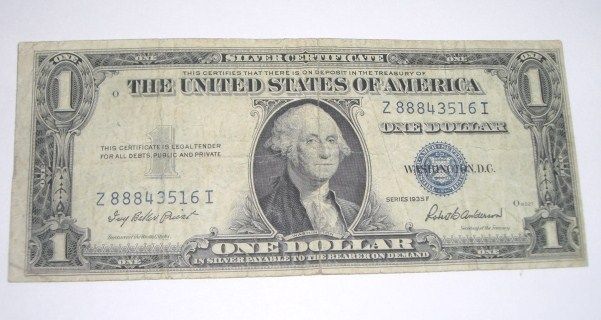 1935 SERIES F RARE 3-8'S SILVER CERTIFICATE $1 SERIAL # Z88843516I *NICE BILL PLEASE LOOK AT PICTURE TO DETERMINE GRADE*!! ***Coin, Currency & All Items Listed in this auction - Grades, Conditions and Values are not Safe Deposit Coins LLC Responsibilty. Grades, Condition and Values are determined by Consigner(s) & Buyers ONLY***